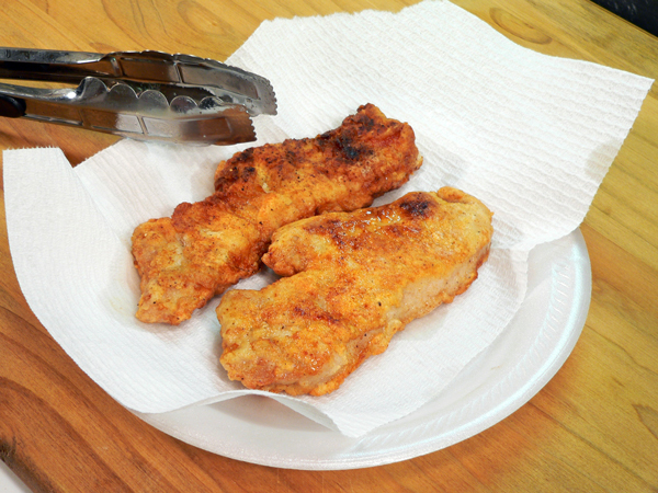 One mistake most new cooks will make is either heating the oil too fast…or too slow. If you start seeing smoke, more than likely the pan is too hot. Lower the heat and lift the pan off the burner for a minute to let it cool down. You’ll need to “test” the temperature of the oil before you add the pork chops to start frying. Once you see the oil heating up, you can drop a pinch of corn meal or flour into the oil and watch for it to “sizzle.” If it does, you”re ready to start frying the pork chops. You could also carefully place a drop of water in the pan. If the temperature is at the right point, the water will start to pop or “talk” to you as it also dances around. Just be careful if adding water and remember that all you need is about one drop. As always, use extreme caution when frying anything. Keep the handle of your pan turned away from the front of the stove and make sure the kids aren’t around the stove. You can thank me later.