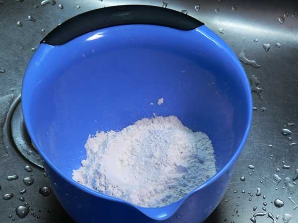 Place 1 cup self-rising flour in a medium sized mixing bowl.