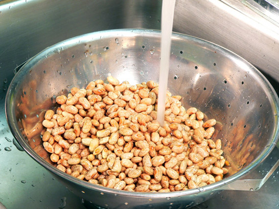 Pour the beans back into the colander to drain them. We’ll also need to wash them again.