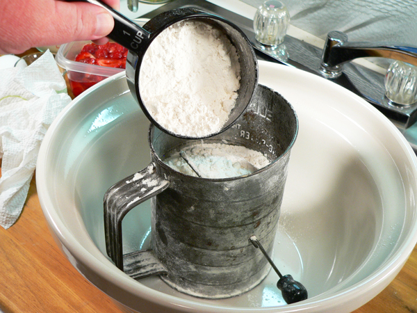 Of course, it did use to happen. We had an old “Hoosier Cabinet” in our kitchen. It had a fancy BUILT IN flour compartment with a sifter on the top left side. While sifting the flour helped break up any lumps, the fine mesh of the sifter could also keep any bugs from….never mind….let’s move on. Sifting is just fun to do….so sift and enjoy.