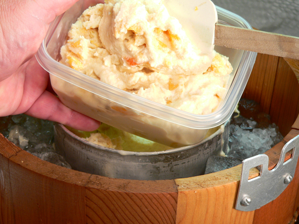 The sealed canister is centered in the wooden bucket of my ice cream maker. Again, you’ll need to follow the instructions that came with your specific unit.