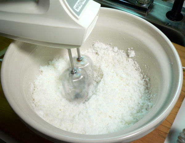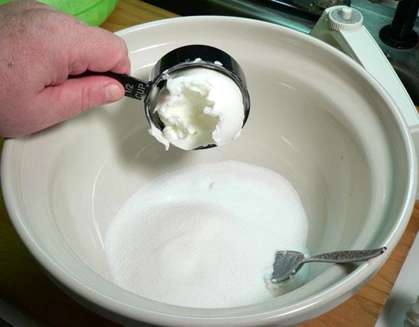 Using a mixer, on low speed, cream the sugar and shortening together.