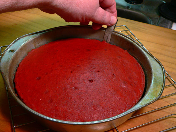 Historical Marker: Now is a great time to tell them how way back during World War II, when foods were rationed, bakers used boiled beets to enhance the color of their cakes. And, tell them that some times, boiled grated beets or, beet baby food, is also used to make this cake. If they’re older kids, tell them how combining the vinegar and buttermilk in this recipe, along with the cocoa, causes the anthocyanin in the cocoa to react and reveals a hint of red in the otherwise chocolate color of cocoa. OK, even I didn’t understand that. But, its what it says on Wikipedia so, you know it must be true… right? If they start asking questions you don’t understand, quickly change the subject and move on.