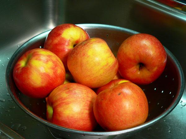 I’m using 5 pounds of apples. Its enough for a “small batch” of Apple Butter. Begin by washing the apples very well under cool running water.