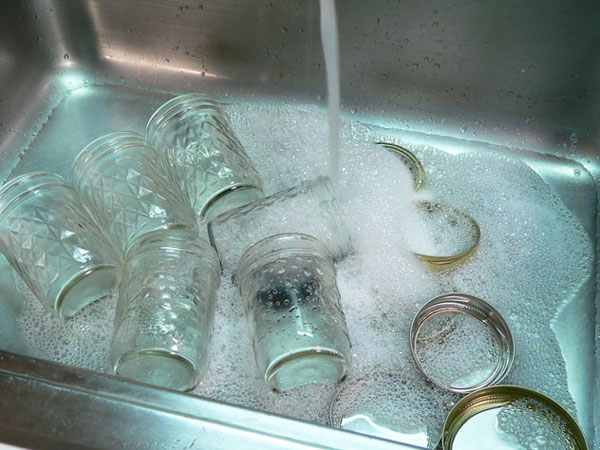 You’ll need to wash your jars in hot soapy water. You’ll also want to wash the bands, so throw them in the sink with the jars. You’ll be using NEW jar lids, so no need to wash those. You also need to check the jars at this time to be sure they don’t have any chips, nicks or cracks in them. Any jars that have chips should be set aside for other projects. A chip in the rim could prevent the jar from sealing properly, so don’t use those if you find any.