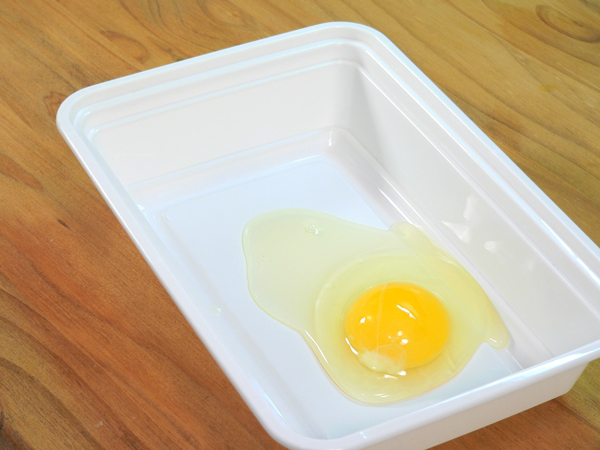 Break one egg into another shallow dish. This is a plastic container from where I’ve ordered Chinese Take Out. I can’t throw them away for some reason. They come with clear plastic tops and are very sturdy. They make great dredge type dishes and you’ll see me use them often. I’m recycling I guess.