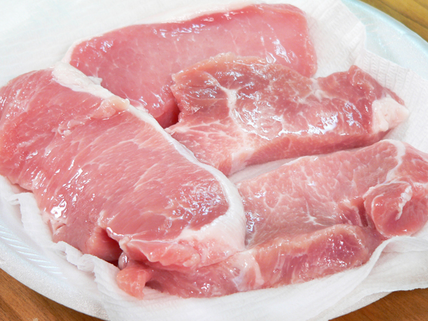 Place the rinsed pork chops on a plate lined with a couple of layers of paper towels and let them drain.