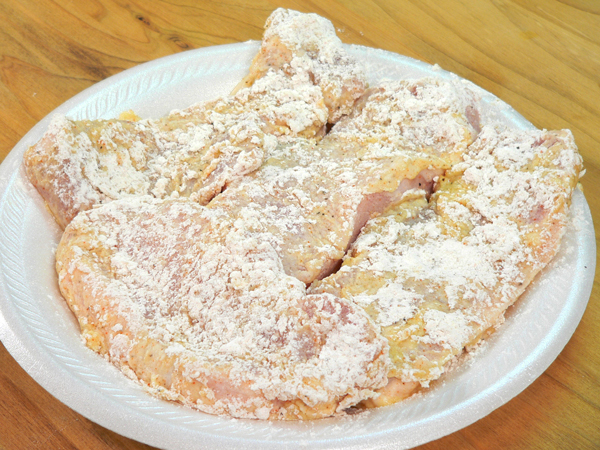 One mistake most new cooks will make is either heating the oil too fast…or too slow. If you start seeing smoke, more than likely the pan is too hot. Lower the heat and lift the pan off the burner for a minute to let it cool down. You’ll need to “test” the temperature of the oil before you add the pork chops to start frying. Once you see the oil heating up, you can drop a pinch of corn meal or flour into the oil and watch for it to “sizzle.” If it does, you”re ready to start frying the pork chops. You could also carefully place a drop of water in the pan. If the temperature is at the right point, the water will start to pop or “talk” to you as it also dances around. Just be careful if adding water and remember that all you need is about one drop. As always, use extreme caution when frying anything. Keep the handle of your pan turned away from the front of the stove and make sure the kids aren’t around the stove. You can thank me later.