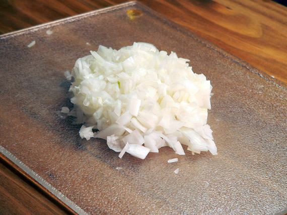 Chop up about half a medium size onion. Again, more or less depending on your taste.