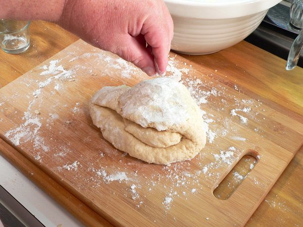 If the dough sticks to your fingers or the counter, just sprinle it with a little more flour and work it in.