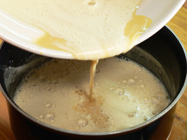 After you “temper” the eggs….pour the whole mixture back into the saucepan.
