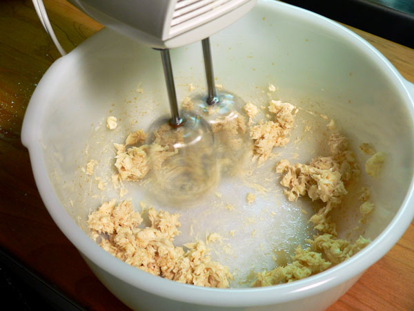 Using a mixer, on low speed, cream the sugar and shortening together.