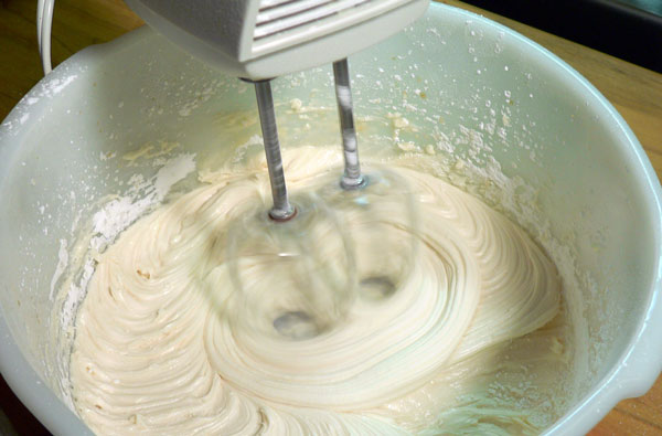 Mix it until it gets to a very smooth consistency, thin enough for spreading, firm enough to hold a bit of shape. It’s very sweet. There may be a finger indentation in there somewhere if you look closely. Where might that have come from I wonder.