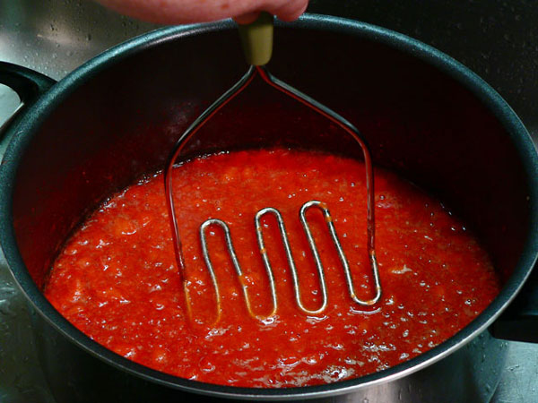 Once the berries are softened, you can mash them a bit to release as much juice from them as possible.